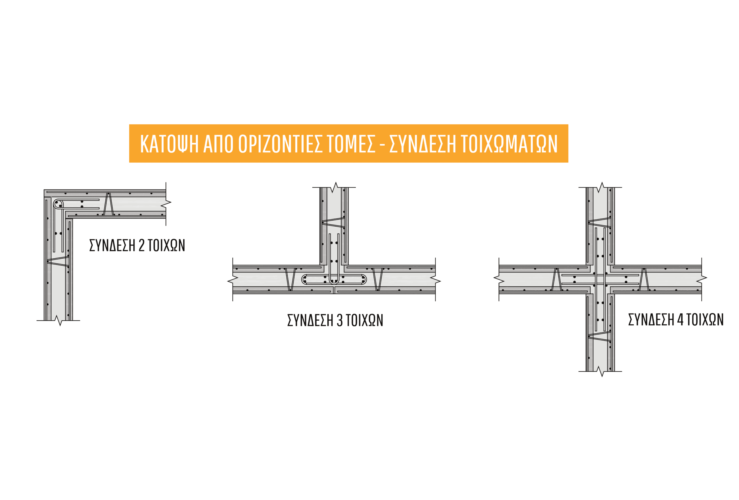 Στο κενό μεταξύ τους, πλήρωνεται με έγχυση σκυροδέματος επί τόπου (in‑situ), δημιουργώντας ένα μονολιθικό, συνεκτικό, κατάλληλα οπλισμένο στοιχείο φέροντος οργανισμού.